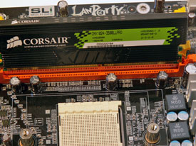 I vår dator använder vi oss av DDR-SDRAM och då vårt moderkort och processor stödjer dubbla minneskanaler är det viktigt att man har två minnesmoduler för att utnyttja systemets fulla prestanda. Vi kommer att installera ett Corsair TWINX2048-3200LLPRO 2048MB kit i vårt system.