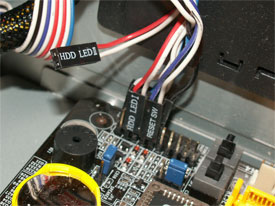 När väl moderkortet sitter på plats kan man passa på att fästa det baskablage som behövs. Dit räknar vi kablar för power/reset-knapp, ljusdioder för dator och hårddiskaktivitet. Dessa kablar kommer från chassit och fästes sedan på moderkortet. Ofta är det utskrivet på moderkortet vilka kablar som ska sitta vart, men annars är det bästa sättet att vända sig till manualen så att alla kablar hamnar rätt. Annars kan det bli omöjligt att starta datorn eller att chassilamporna inte fungerar som dem ska.