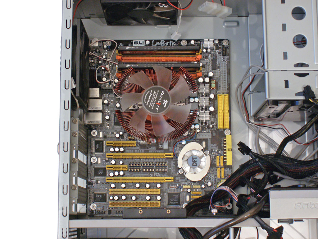 Det kan ofta vara svårt att komma åt stiften på moderkorten för dessa kablar och det blir inte lättare när man installerar fler komponenter, så detta görs lättast direkt efter att man installerat moderkortet i chassit. Innan vi går vidare kan vi kika hur det ser ut i chassit än så länge efter att vi installerat moderkortet med processor och minne.