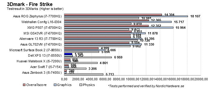 Fire Strike är inte något roligt test för datorer med integrerad grafik och Dell XPS 13 är ingen undantag. Den här datorn är inte gjord för att spela på och det märks tydligt.