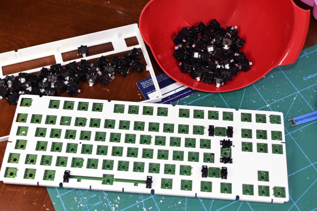 Vi väljer att sortera de brytare som satt under alfabetiska tangenter separat från övriga, eftersom att dessa är mer lena från mer frekvent användning. Med det är vi klara med avlödningen!