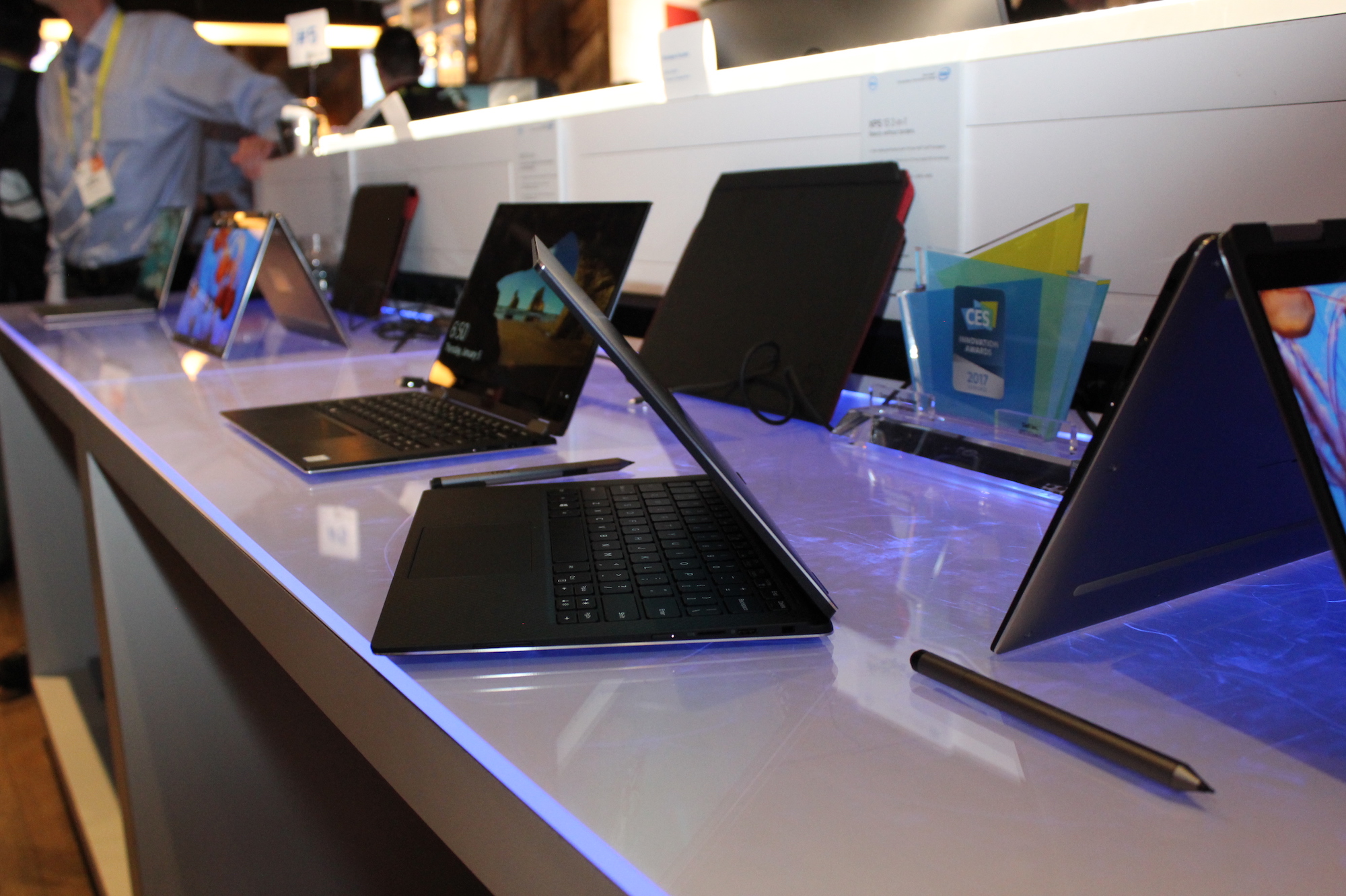 Dells “InfinityEdge” bildskärmar kan konfigureras upp till en upplösning på 3 200 x 1 800 pixlar, med baskonfigurationen på 1 920 x 1 080 pixlar. 2-i-1-modellen kommer både pekskärm och pekpenna. Båda modellerna kommer även med en Thunderbolt 3-utgång.
