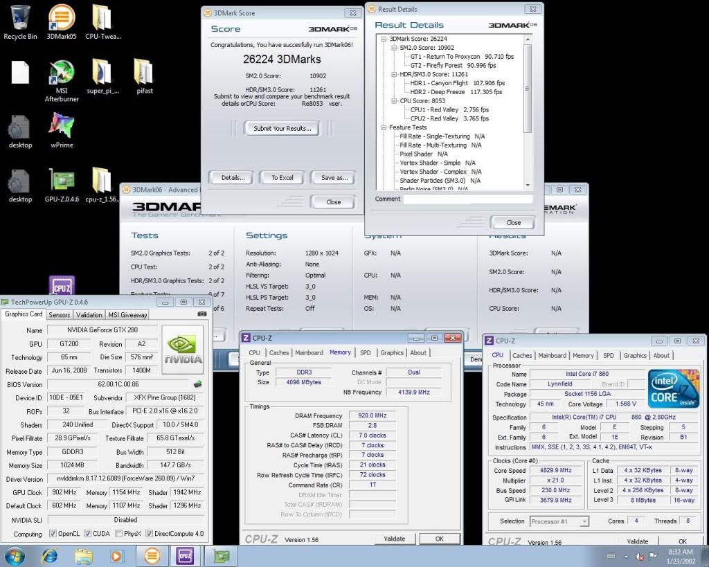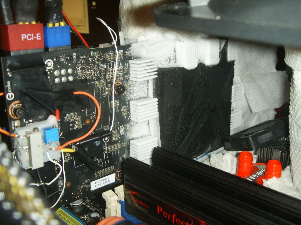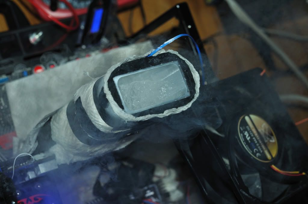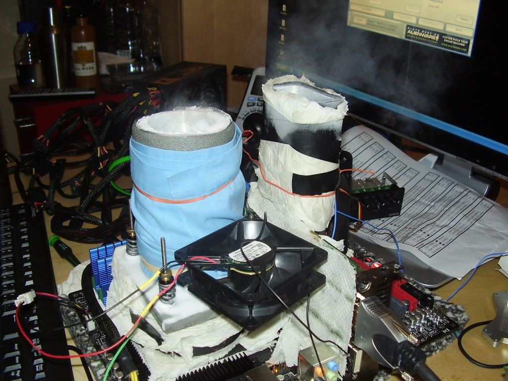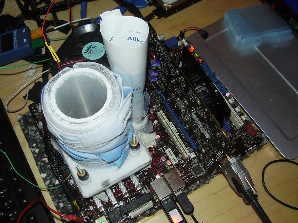 Jag inledde starkt med att få vatten över REX brädan då vattenkylningen till NB var kasst monterad, jag skyller på slangarna helt klart. Den brädan fick sova framför luftavfuktaren för att sedan lira klockrent lördag och söndag. Tyvärr är min e8500 löjligt kass så det blir inga 01 resultat i denna tråden. Gtx280 kortet däremot är en skön lirare, efter en liten modd (http://www.techsweden.org/foru.....8;t=225644) funkade kortet bra och kunde gå ner till -145C innan vi nådde cold slow. Med spänning på något över 1,6v gick 1150mhz core smidigt genom nature, den klarade halva testet i 1200mhz men sedan började det strula. Tror det kan ha varit kondens som fick det att börja krascha konstant, rev i alla fall ner för att inte döda kortet.