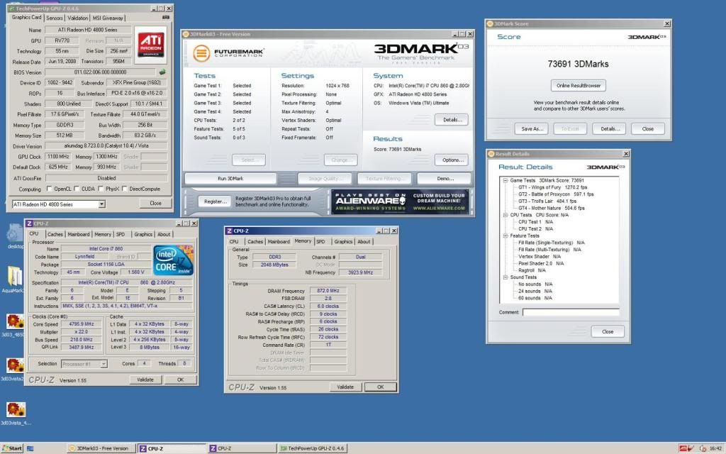 Sedan har vi helgens höjdpunkt, ett av Marcus 4850 var en pigg rackare. Kändes lovande när vi insåg att det helt saknade cb så mitt jobb som hällare blev riktigt slappt. Ganska snabbt stod det klart att kortet kunde ta WR i 03 med sina fin klocks, blev en stabil ökning med 1500 poäng mer än förra rekordet.