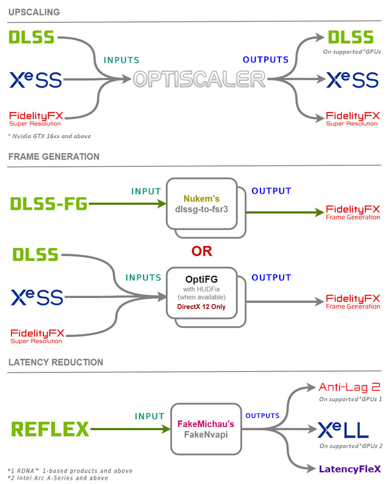 Nu är det dock möjligt att använda Open Source-verktyget OptiScaler för att ta FSR 4 till alla tillgängliga DirectX 11 eller 12-spel som har stöd för FSR 2, DLSS 2 eller Intel XeSS. Användare med grafikkort som har stöd för FSR 4 kan nu använda en DLL-fil från OptiScaler och lägga in denna i ett spels installationsmapp. Så länge DX11/12-spelet inte har ett antifusk-system som ställer sig i vägen eller använder sig av Vulkan-gränssnittet kan man alltså nu uppgradera FSR 2, DLSS 2 eller XeSS till FSR 4.