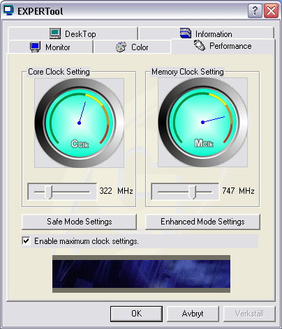kortet (Default = 300/650Mhz, Enchanced = 310/680Mhz). Då det är