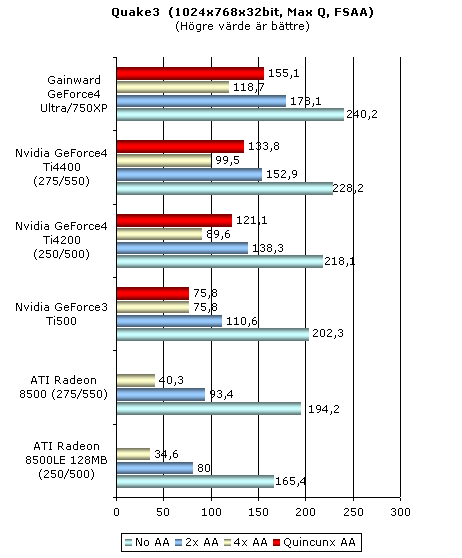 Radeon 8500 klarar inte av trycket när även FSAA aktiveras och prestandan