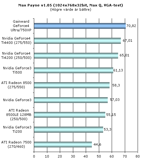 bit högre än på GeForce3 Ti500 vilket har sina tydliga spår