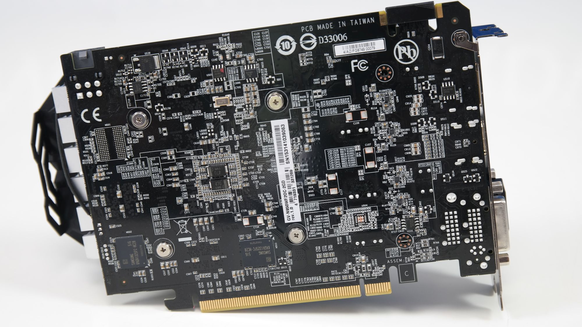 Kortets baksida är fritt och täcks inte av någon backplate, vilket är acceptabelt i den här prisklassen. Även här sker strömförsörjningen med en 6 pins kontakt.