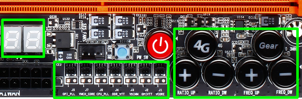 OC-Touch makes it possible to change both bus and multiplier directly on the board through physical buttons whiel an error LED panel and measuring spots for voltages makes it easier to keep track of the health of the board.