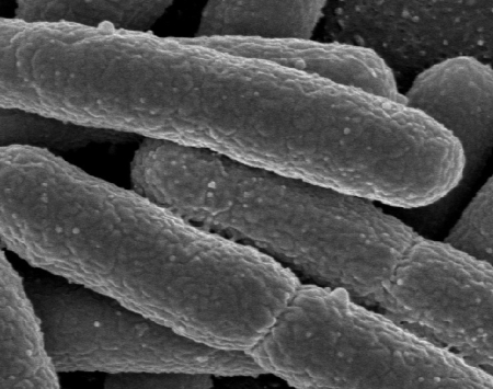 Närbild på E. coli (Rocky Mountain Laboratories, NIAID, NIH)