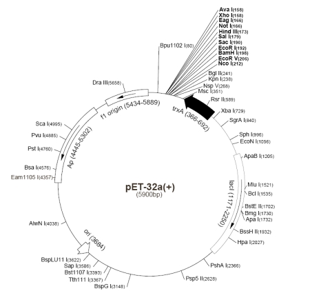 Ta nu din PCR-produkt och tvätta den ren från artefakter och annat ointressant DNA genom att använda Geneclean II från Bio 101, Protokollet finns på samma sida. Nu ska vi föra in ditt DNA i bakterierna, men först måste vi sätta in det i en slags transportör, vektor, som även innehåller en del annan information. Vi kommer att använda pET32a(+) från Novagen i detta experiment eftersom den erbjuder inte bara många klyvningsställen utan också fina uppreningsmöjligheter av det färdiga proteinet..