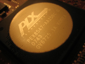 Avslutningsvis har vi två närbilder på RV670-kärnan och PCI-E-bryggkretsen i något som ser ut att vara solnedgång. Misströsta icke, vi har suttit inomhus med korten under hela recensionen.