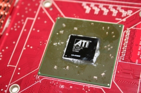 Borttagningen av kylaren är ingen speciellt jobbig process, omän en smula tidskrävande, totalt 20 skruvar ska tas loss. När väl detta är gjort får man beskåda två RV670-kärnor, ytterligare åtta Samsung-minnen, ett enormt PXL-bryggchip och diverse strömförsörjningskomponenter som suger åt sig ström via de två PCI-E-strömportarna, en 6-, en 8-pin, precis som på Radeon HD 2900XT. Ha dock i åtanke att R600 endast var en kärna, medan detta kort har två. Hur det ser ut ser ni nedan.