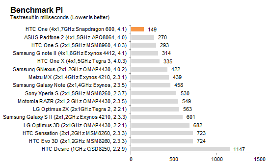 HTC One är först ut med Qualcomm:s tredje Krait-baserade processorenhet – Snapdragon 600. Snapdragon är, till skillnad från dagens alternativ, inte en refernsdesign från ARM (Cortex) utan en egendesign från Qualcomm. En mycket effektiv (prestanda/strömförbrukning) som är snabbare än en Cortex A9, men långsammare än A15. Resultatet är att Quacomm kan lansera en mycket konkurrenskraftig krets tidigare före konkurrenterna och har sedan slutet på förra året varit ohotade i toppen, en situation som kommer att stå sig åtminstone fram tills Tegra 4 och Exynos Octa – båda A15-baserade – lanseras någon gång under andra halvan av året. Beroende på hur kommande Snapdragon 800 presterar.