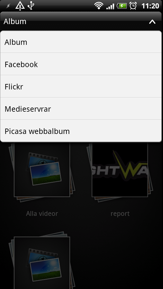 HTC har som bekant valt att svetsa samman sin DLNA-funktionalitet med sin vanliga multimediahantering. Förutom att vi kan “trycka ut” video, musik och bilder till en extern DLNA-enhet går det även att ta del av media som lagras inte bara på lokala DLNA-servrar utan även på andra onlinetjänster som Picasa, Facebook och Flickr.