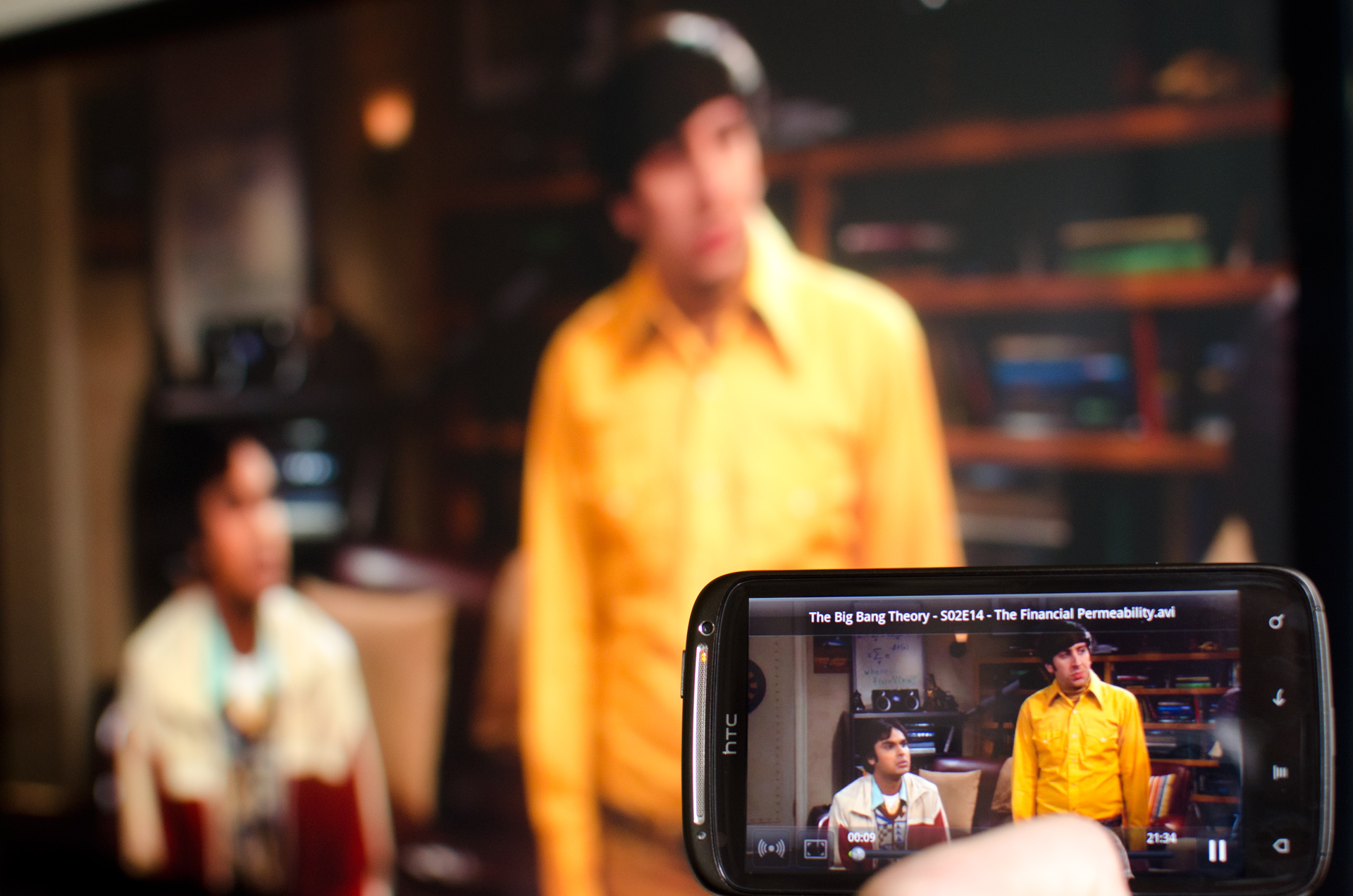 Med en MHL-adapter väl i hamn lyckas vi i alla fall koppla in telefonen i vår hemmabioanläggning och fick återigen anledning att svära över de tre separata kablar som krävs för inkopplingen av telefonen (MHL-till-HDMI-adapter, HDMI-kabel samt MicroUSB kabel).