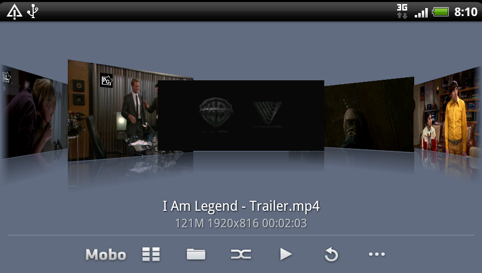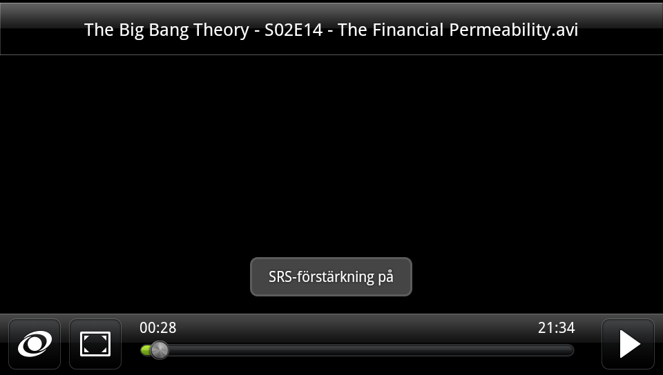Externa mediaspelare räknar vi inte in i telefonens egna bestyckning men det är väl värt ett försök för att se vilka format och upplösningar som telefonens hårdvara är kapabel till att driva. Det första vi märker är att telefonen här kan identifiera och faktiskt även spela upp MKV-filer. Men till vårt stora förtret lyckas vi inte få något ljud från filerna. Oavsett om det är AC3-stereospår eller flerkanaliga ljudspår i ACC eller AC3 format vägrar telefonen ge oss något ljud, vilket betyder att inte minst MKV-uppspelning är uteslutet i dagsläget.