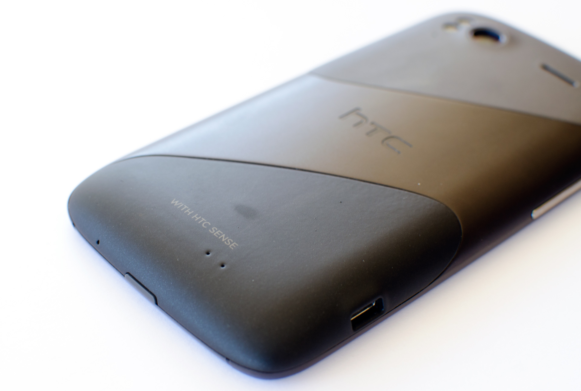 Vänder vi på luren mäts vi av Sensations karaktäristiska tredelade baksida. Undertecknad är personligen inte särskilt förtjust i de tre nyanserna av grå, brun och svart som HTC valt att använda sig av. De tidiga pressbilder och videoklipp som visats av telefonen pekade på att båda den övre och nedre plastkåpan skulle vara svart, vilket i alla fall undertecknad föredragit. Men smaken är som vanligt som baken. De två plastkåporna är vad telefonen vilar på och ger en närmast gummiaktig känsla på hårda underlag, vilket bör minska risken för repor.