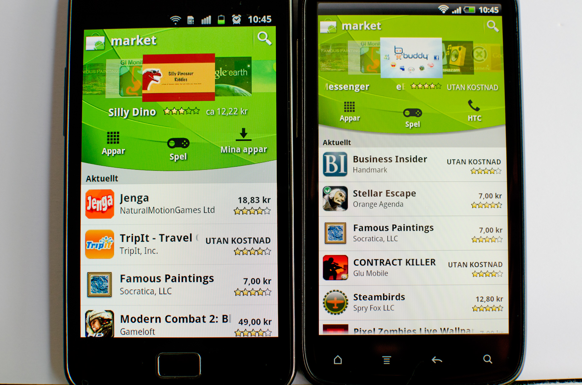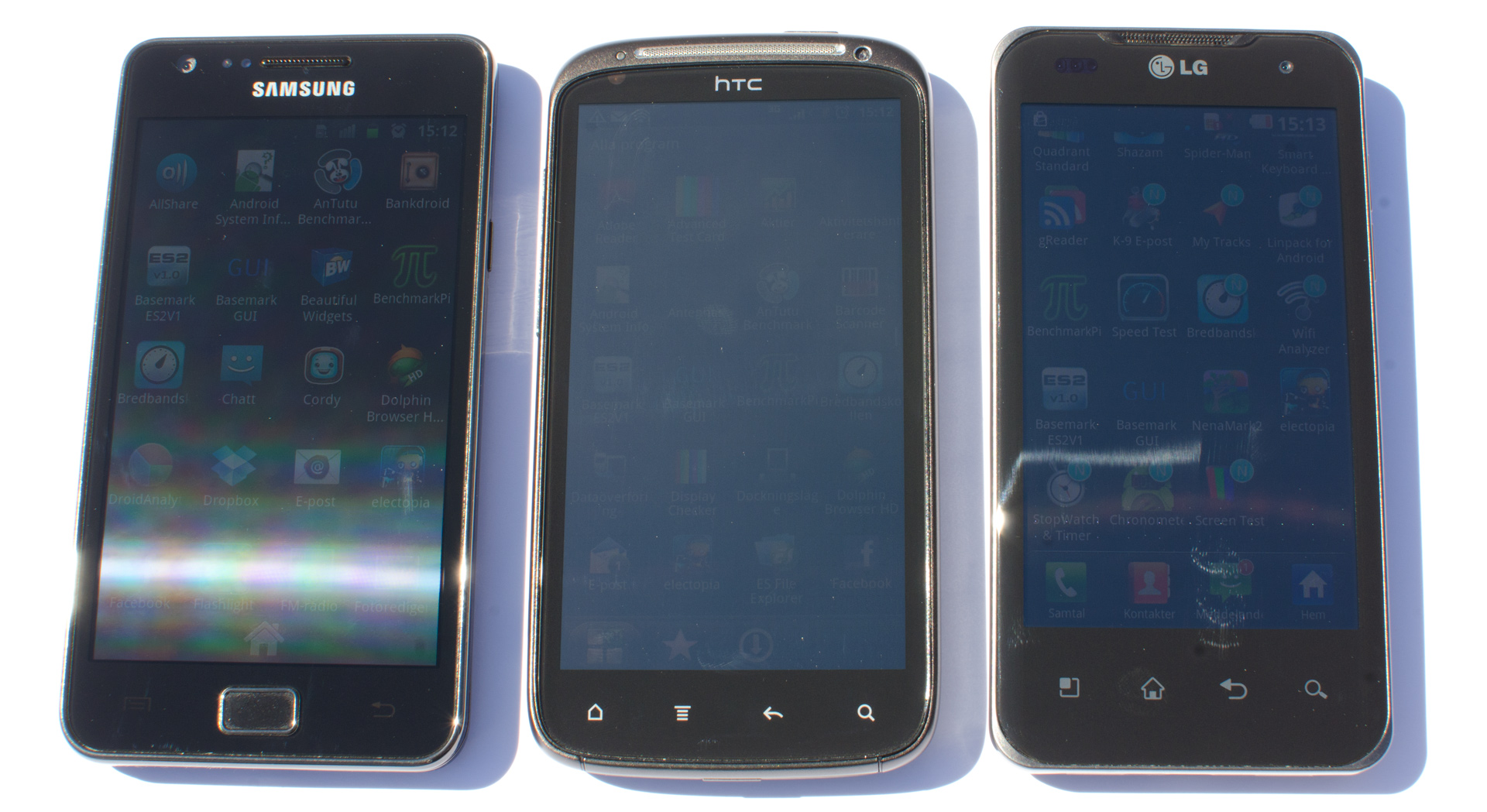 Skärmjämförelser i mörka miljöer: Galaxy S II vs. Sensation vs. Optimus 2X![]()