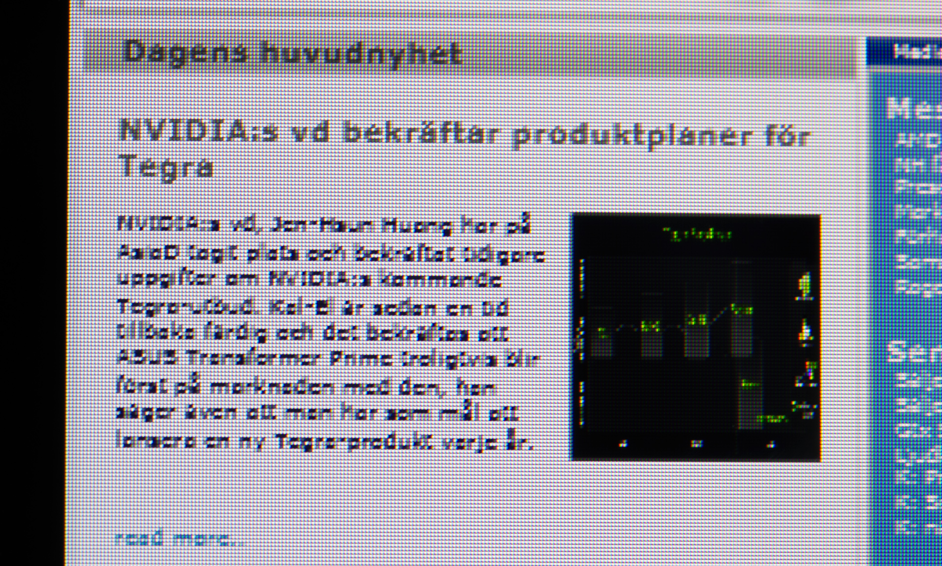 Vi märker dock av bristen på upplösning när vi tar oss ut på Internet där ej skalbar grafik och text ser rent ut sagt dåligt ut. Vi såg liknande tendenser på Samsung Galaxy S II som också nöjer sig med en WVGA-upplösning medan vi på HTC Evo 3D får väl renderad text även i riktigt små format. På Evo 3D är det ofta istället 4,3 tums skärmens storlek som hindrar oss från att läsa mindre text – vilket också visar att en qHD-upplöst 4,7 tums skärm verkligen hade varit en intressant kombination. Eller för den delen 720p upplösning som nu ser ut att bli en ny standard på Android-marknaden.