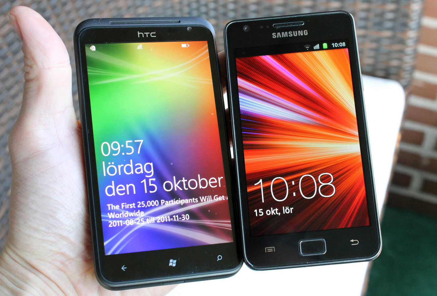 HTC Titan med 4,7 tums Super LCD och Samsung Galaxy II med 4,3 tums Super AMOLED Plus.