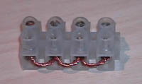8 hål att sticka in kablar i, fyra på var sida om raden.