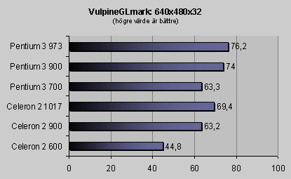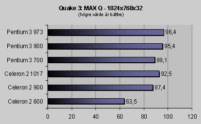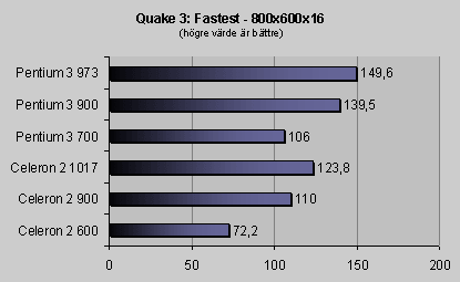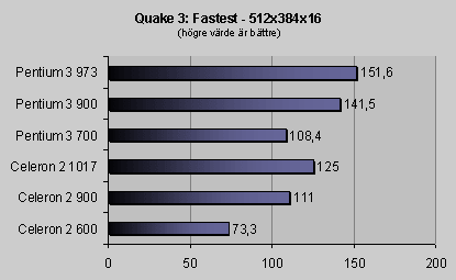 I tester visade det sig att en Celeron 300A @ 450Mhz oftast var lika snabb