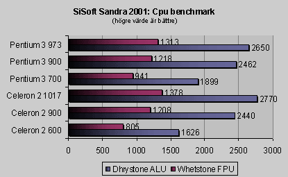 ser i testerna att Pentium 3 processorn i 973Mhz vinner allt förutom
