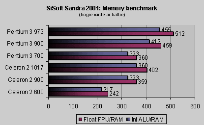 2 600Mhz processorn allt för långt bak. I memory benchmark