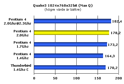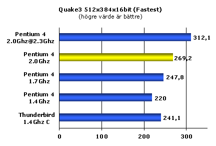 Man kan även notera den överklockade P4 processorn som med lätthet tar sig över 300 FPS. Usch Quake3 börjar kännas gammalt. 🙂