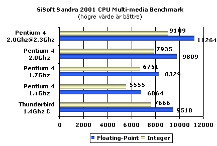 I CPU Multi-media testet ser vi att Pentium 4 processorerna klarar sig lite bättre men det är återigen med liten marginal P4 2.0Ghz drar längsta strået.