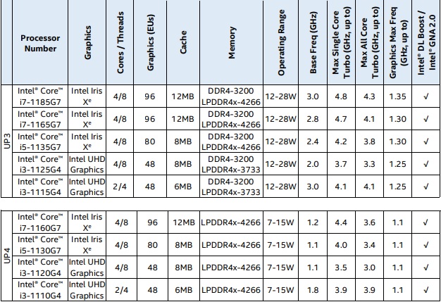 Vi ser klockfrekvenser på upp till 4,8 GHz och grafikkretsar kallade Iris Xe som baseras på företagets nya grafikarkitektur Xe. Dessa grafikkretsar påstås erbjuda bättre prestanda än 90 procent av de bärbara datorer utrustade med diskreta grafikkretsar som såldes förra året.