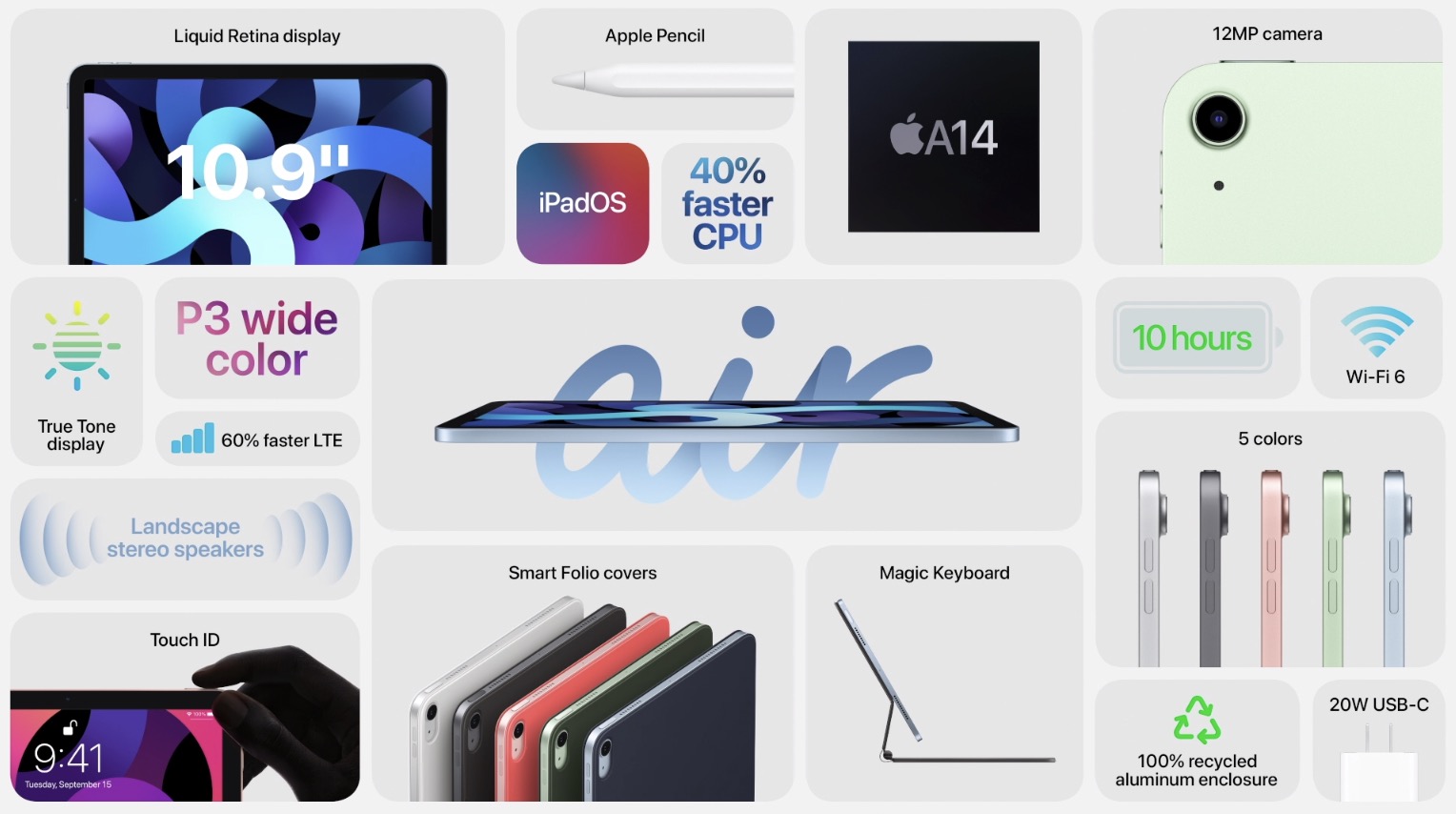 Apple har nu avtäckt den åttonde generationens iPad, den nya upplagan av iPad Air och processorn A14 som ska erbjuda 40 procent ökad CPU-prestanda och 30 procent ökad GPU-prestanda jämfört med sin föregångare.