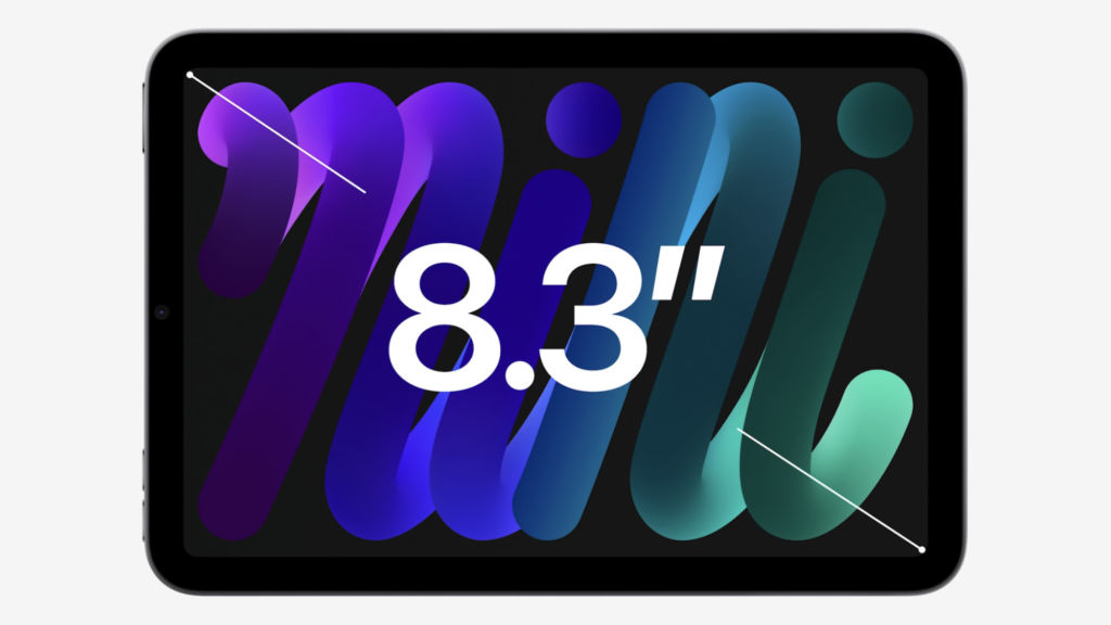 Designmässigt har Apple skalat bort en del av kanterna runt enhetens skärm. Något som innebär en aningen större skärmyta samt att Ipad Mini numera kommer utan någon fysisk hemknapp. Retina-skärmen mäter in på 8,3 tum och har en maximal ljusstyrka på 500 nits.