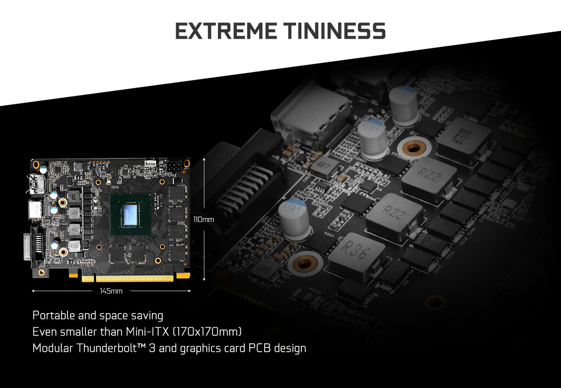 KFA2 som i Kina går under namnet Galax har nu visat upp en ny extern grafikkortslösning kallad SNPR. Produkten är ett extern grafikkortschassi med ett Geforce GTX 1060 6GB grafikkort under skalet. Chassit som mäter 165 mm x 156.5 mm x 73 mm med en vikt på 1,38 kilo använder sig av ett externt 230 watts nätaggregat (power-brick) och satsar på en fler-lagerslösning i sin interna design. Ett minimoderkort med en PCIe x16-plats ser till att hålla det ovanliggande grafikkortet strömförsörjt samt kommunicera med din dator genom kretskortets Thunderbolt 3-anslutning (40 Gbps).