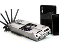 The graphics card send its video signals through the WHDI circuit that sits on a mini-PCIe port on the graphics card. The signals then goes out through the five powerful antennas that sits next to the other regular video outputs. The card ships with a receiver box that connects to your display of choice; monitor, TV or projector perhaps.