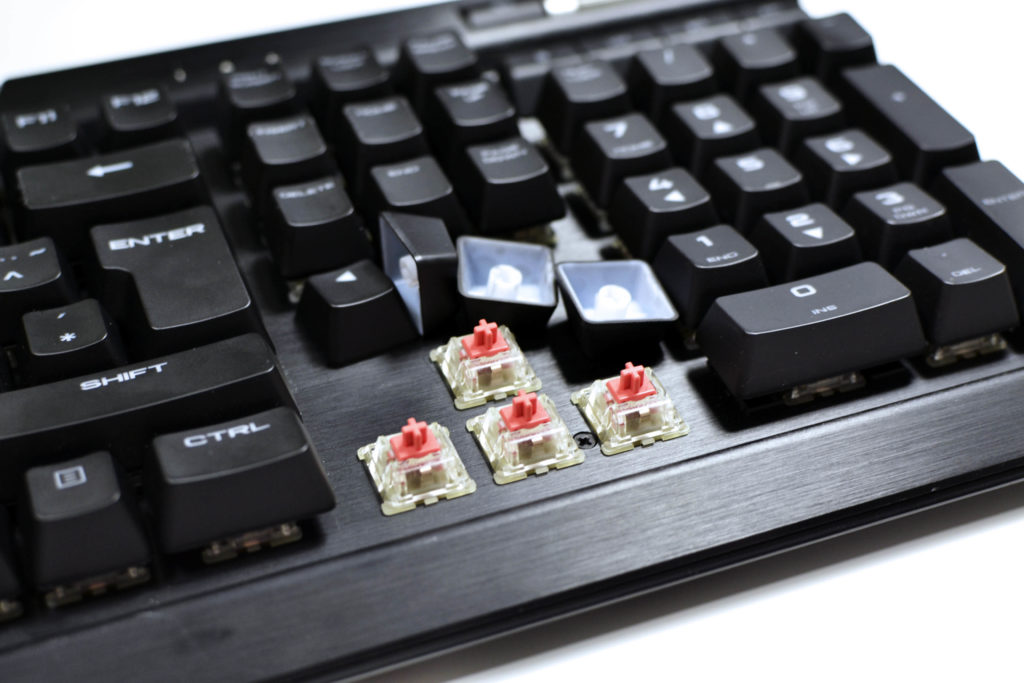 Cherry MX Red visas på bilden ovan, men Cherry MX Silent Red aktiveras identiskt.