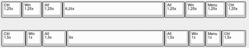 Razer har valt en layout med en bottenrad som inte följer en vanlig standard, vilket gör det svårt för oss att hitta keycaps på eftermarknaden för att byta ut de sorgliga keycapsen som tangentbordet skeppas med. Via nedan bild blir det lite tydligare med vad i menar. Ovan är standard, medan den nedre är den layout som Razer använder.