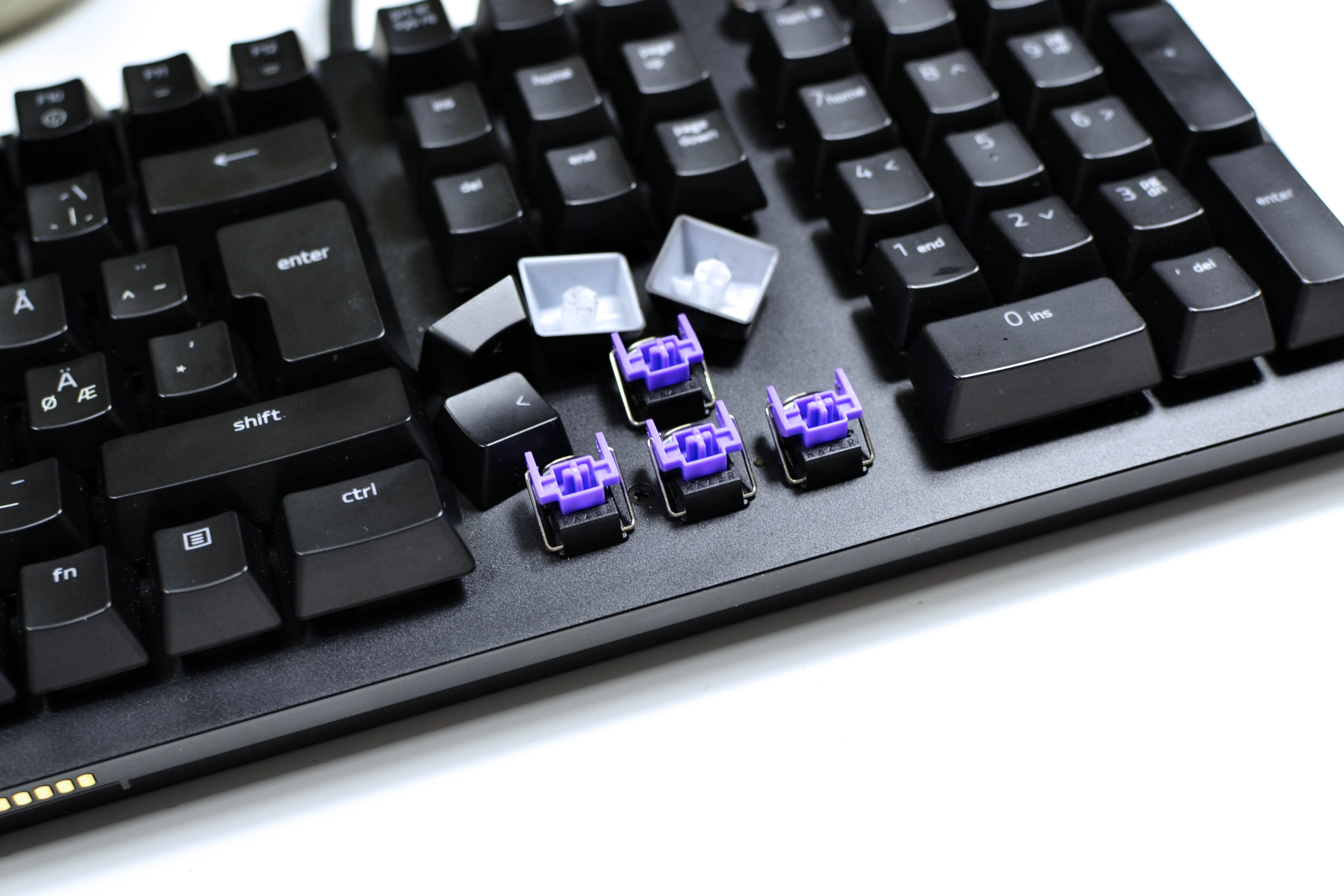 Lite intressant i dagens test är att vi har fått känna på tre lite mer unika brytare. I Huntsman Elite så har vi Razers “egna” nya brytare, och i Varmilos VA109M RGB och Corsairs K70 MK.2 så stöter vi på lite mer sällsynta Cherry-alternativ. Det är för oss även intressant hur de tre olika tillverkarna har tacklat keycaps, något som alltid är ett hett ämne i våra tangentbordstest.