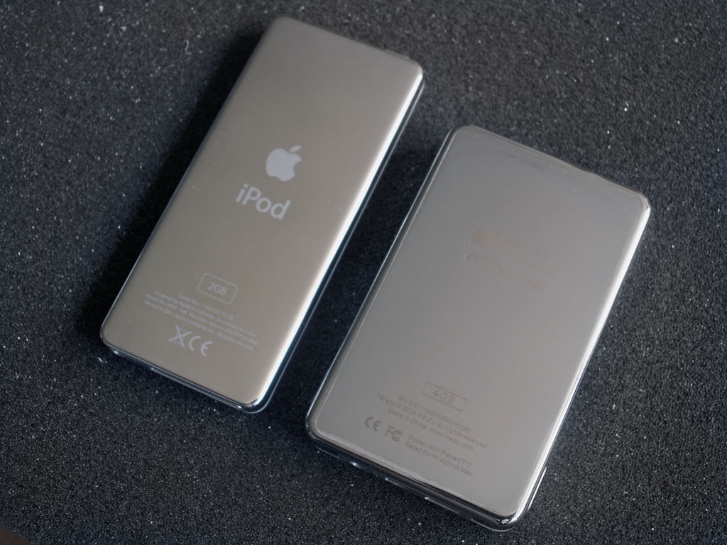 För dem som just varit i kontakt med, eller ännu bättre äger, en iPod Nano är det omöjligt att inte se hur MEIZU faktiskt lånat designelement nästan överallt. Från själva spelarens design till skyddsväskan som även den nästan är identisk. För att göra det lite lättare för er att se likheterna har vi fått Apples iPod Nano att ställa upp på en liten fotosession med vår M6:a. Under skrivande stund har Apple precis lanserat sin nya version av iPod Nano så det är ursprungsmodellen vi kommer jämföra med här.