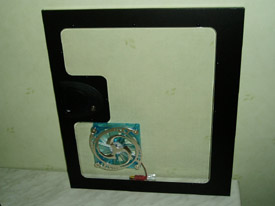 En medföljande 80*80*25 mm fläkt i sidpanelen