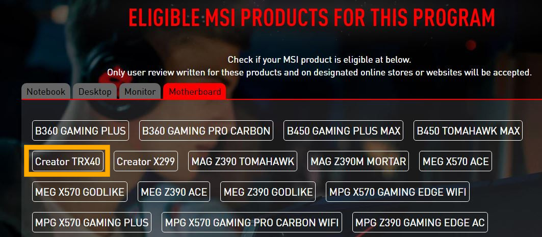 Detta är dock endast spekulationer än så länge. Däremot ser det ut som att i alla fall TRX40 är på väg tillsammans med de kommande processorerna. Tillverkaren MSI har lanserat en kampanjsida där det framgår att kunder som köper och ett av företagets moderkort och lämnar en recension av produkten kan få ett presentkort hos plattformen Steam värt 25 dollar. Bland de moderkortsmodeller som hemsidan listat fanns en modell vid namn Creator TRX40 tillgänglig under en kort tid.