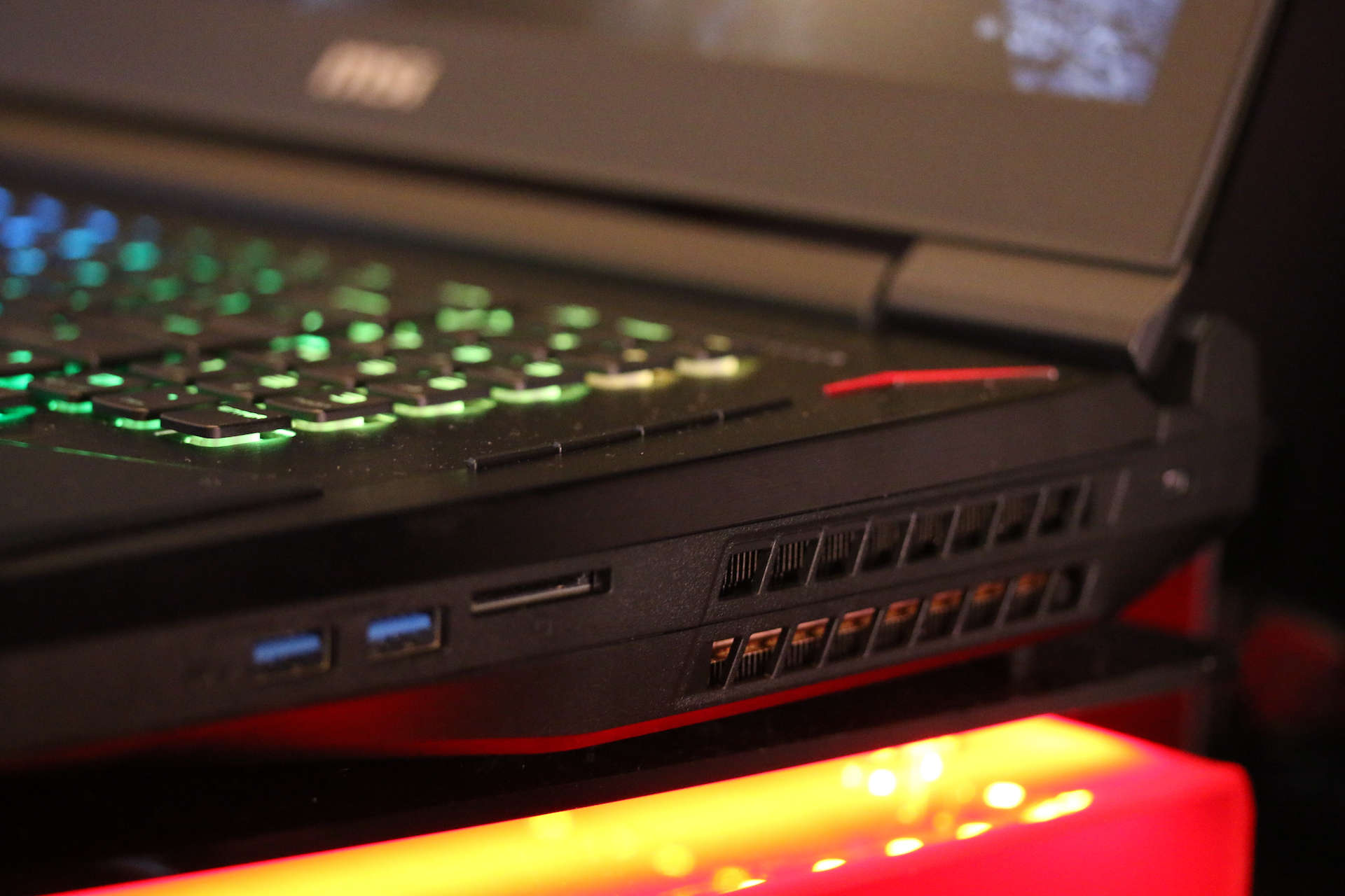 Inbyggt finns ett tangentbord från Steelseries med individuell RGB-belysning på samtliga tangenter. Även pekplattan har bestyckats med två belysta ränder som kan konfigureras i MSI:s Aura-mjukvara.