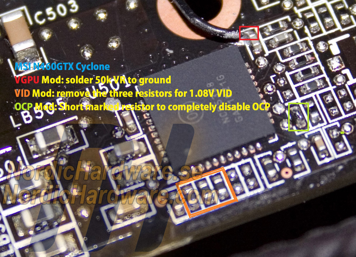 Getting a N460GTX Cyclone in the test lab worked out well since HWBot and MSI held a competition for GTS 450 and GTX 460 GPUs, sadly N460GTX Hawk looks hotter than my Cyclone. Oh well, armed with soldering paste, a Weller and some data sheets I thought that nothing was impossible, so I compiled some mods and wrote a small guide for those of you have a cards lying around and wants the most of it.