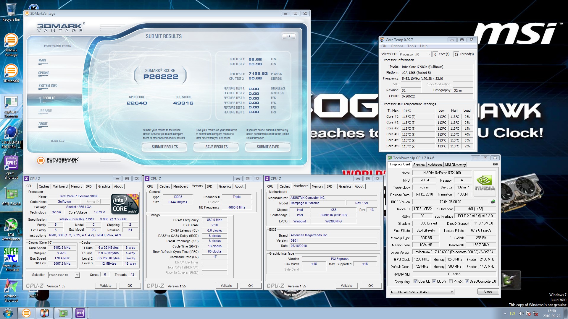 P26222 in 3DMark Vantage with MSI N460GTX Cyclone in 1200/1240