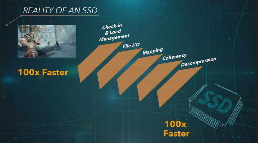 Sony har i alla fall en prestandafördel. Den sitter i lagringen. Sony utlovar en bandbredd på 5,5 GB/s tack vare en Sony-utvecklad flashkontroller och en lagringsenhet med 825 GB utrymme. Den höga prestandan sägs ge utvecklare möjlighet att ladda betydligt större resurser till RAM för begränsade områden och snabbt ladda ny data till RAM när spelaren flyttar sig, utan att behöva placera spelaren i en tråkig korridor eller hiss medan data laddas från lagring. Sony menar att en spel kan ladda 4 GB data under de 0,5 sekunder det exempelvis kan ta för en spelare att vända sig om. Samma möjlighet kan Microsoft potentiellt sakna med en halverad badbredd i jämförelse.