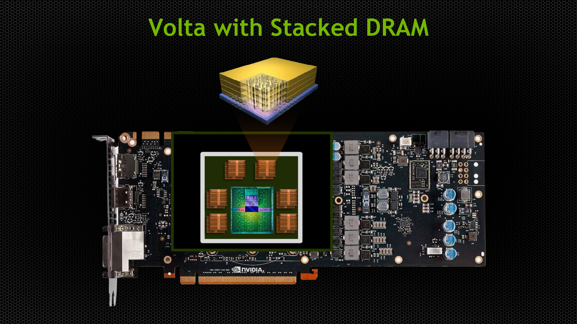 Nvidias teknik med att stapla DRAM-kretsar på varandra kring själva grafikkretsen är däremot något som har tydliga fördelar för Volta-arkitekturen som kommer att lanseras troligtvis någon gång mellan 2015 och 2016. Genom att integrera en del av grafikminnet direkt i GPU-paketet kan Nvidia minimera datavägen från minne till GPU samt göra det lättare att skapa en bredare minnesbuss mellan de två komponenterna.