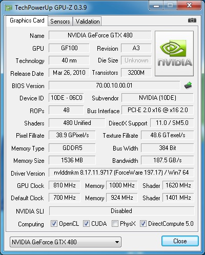 Så då till överklockningen. Det är alltid intressant att se vad man kan krama ur en ny arkitektur, men det ska sägas med en gång att våra förväntningar inte innefattar skyhöga klockfrekvenser, då standardfrekvenserna är 700MHz på kärnan, 1401MHz på shaders och 924MHz på GDDR5-minnet. Vår första tanke var att minnet bör gå att pressa en bra bit, men antingen har NVIDIA inte riktigt lyckats med sin minneskontroller, eller så går alla bra GDDR5-minnen fortfarande till AMD-lägret. Vi nådde endast 1000MHz (4000MHz QDR) stabilt i vår testsvit.