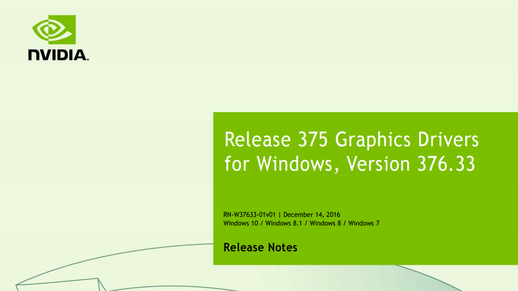 Nvidia har nu släppt sin drivrutin Geforce 376.33 WHQL. Den reparerar flertalet säkerhetshål, Nvidia uppmanar till uppdatering snarast möjligt.